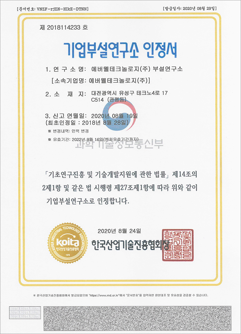 기업부설연구소 인정서 페이지 정보 작성자 관리자 조회 493회 작성일 20-11-06 14:45 목록 본문 기업부설연구소 인정서 이전글ISO9001_인증서 20.11.06 다음글벤처기업 확인서 20.11.06 댓글 0 댓글목록 등록된 댓글이 없습니다.
