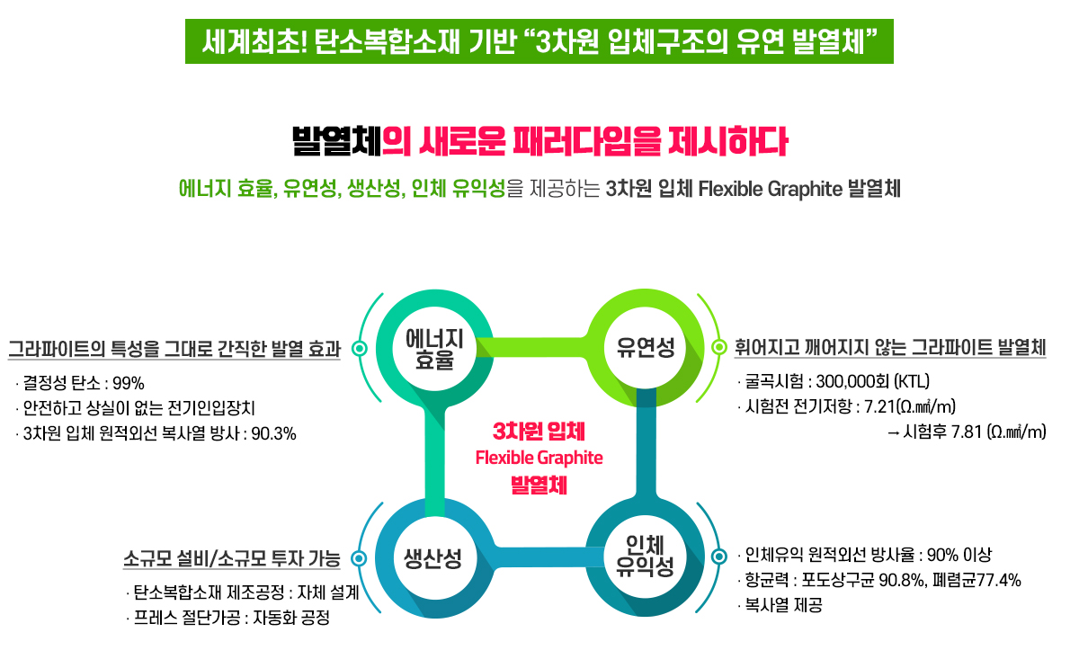 독자적인 기술력으로 개발된 첨단 3차원 입체 Flexible Graphite